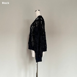 チュール地に華やかなコード刺繍をあしらったカーディガン。