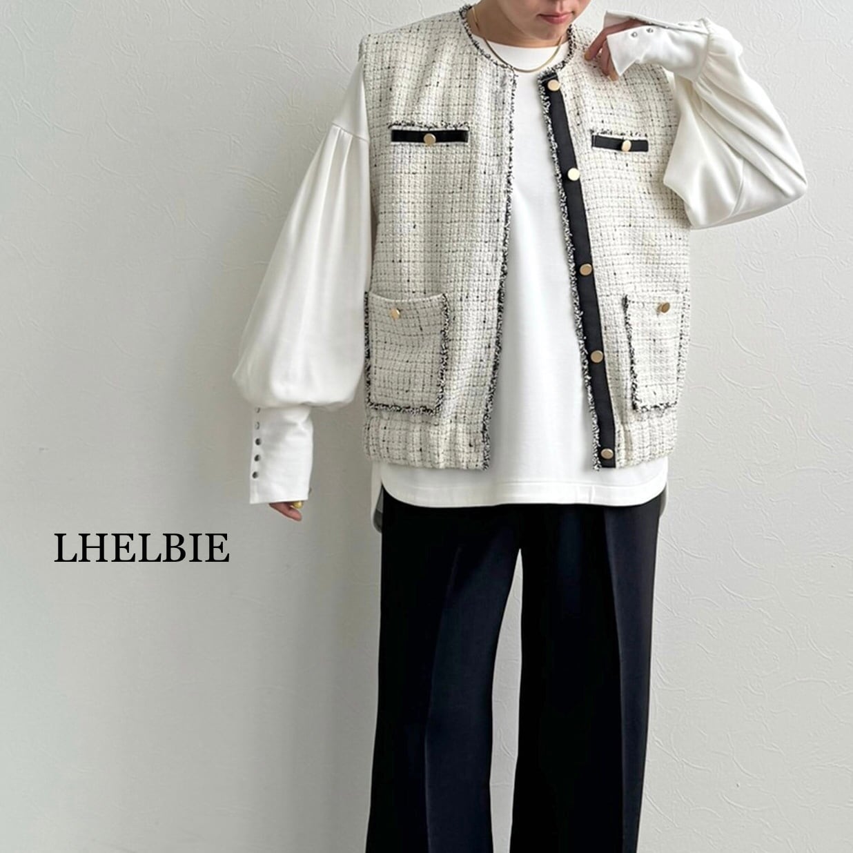 【LHELBIE】フリンジツイードベスト(52189F)