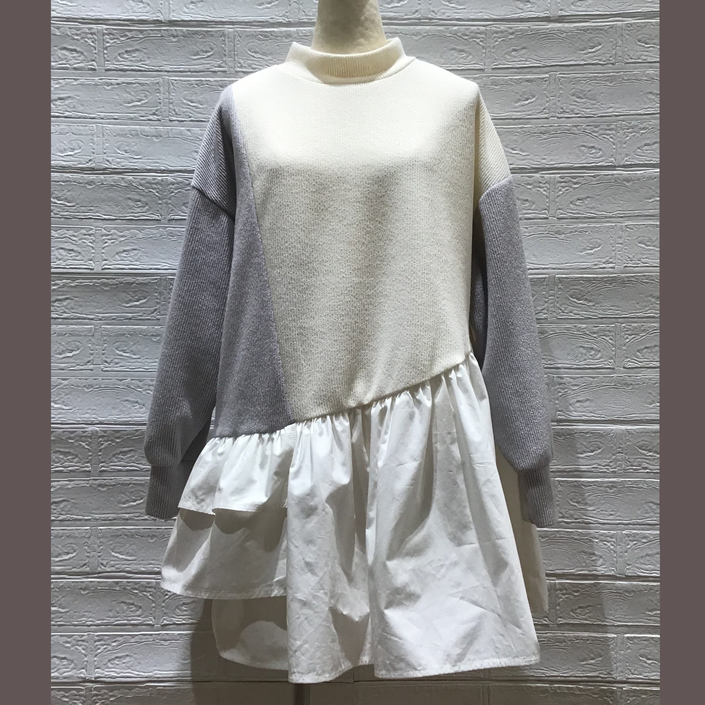 春先に着ていただけるニット×シャツ生地合わせのプルオーバー。