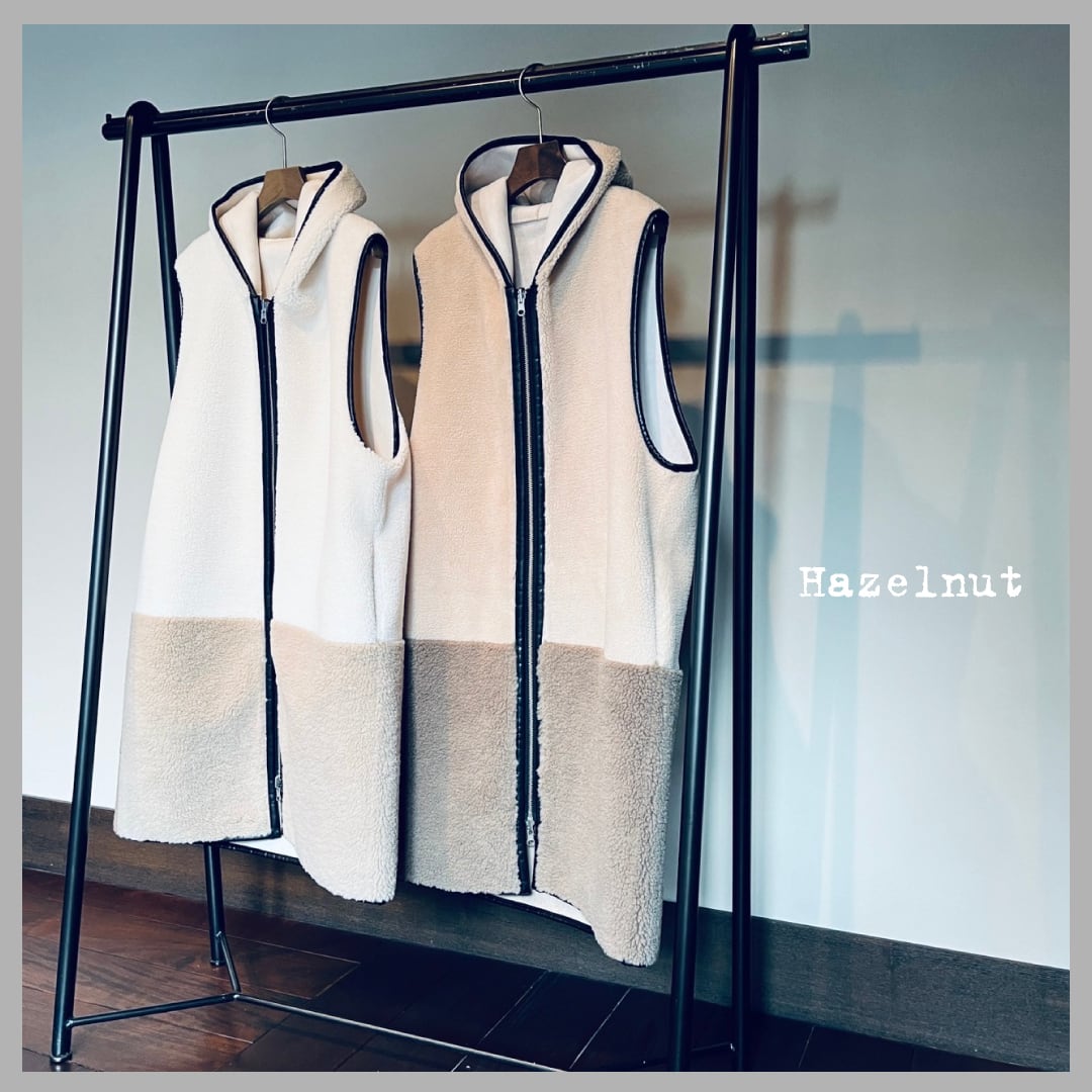 【Hazelnut】リバーシブルバイカラーボアベスト(24607)